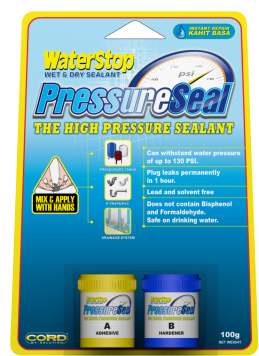 An epoxy based sealant intended for cracks, holes, and leaks caused by water pressure.